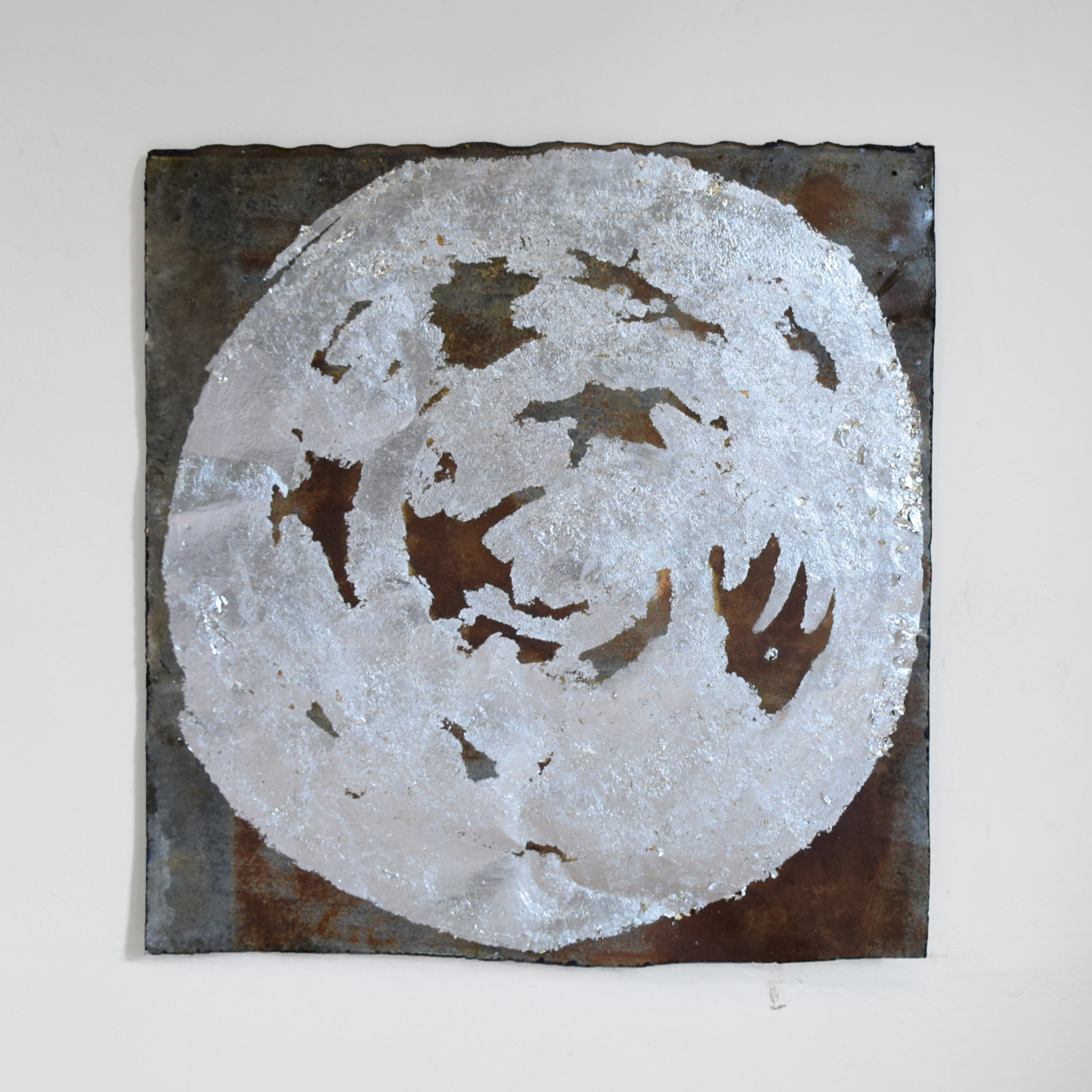 22k gold leave, brass leave, rust, acrylic lacquer on metal sheeet